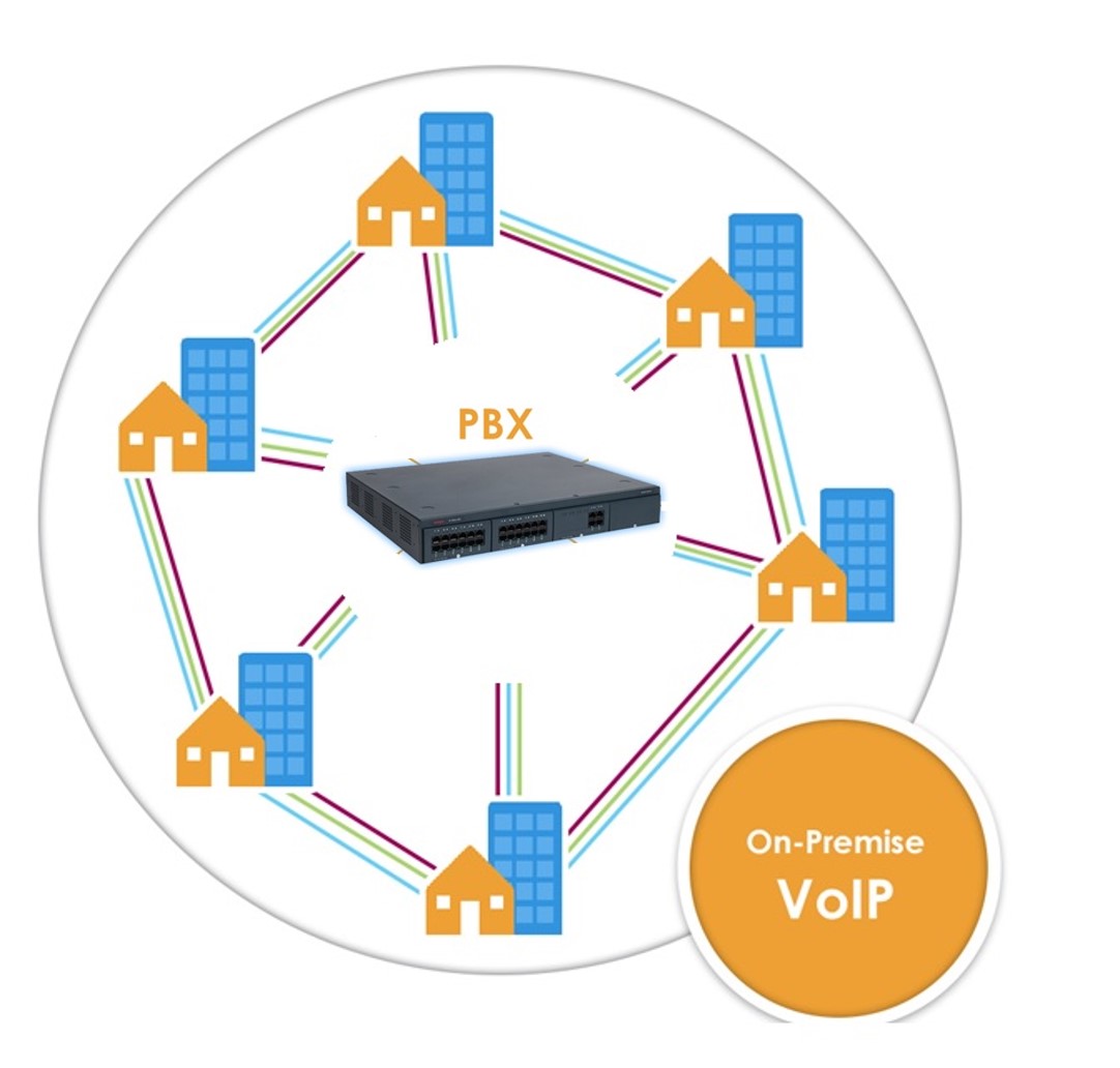 The infrastructure on the on-prem VoIP phone systems is similar to PBX phone systems. The difference is that all communication happens over the Internet instead of the PSTN and that you can transfer a whole lot more than just voice via these channels. These systems also offer better features.